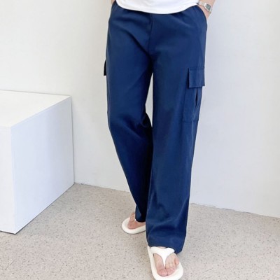 아이스 남자 카고 바지 여름바지 와이드 쿨 밴딩 팬츠