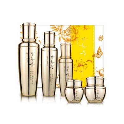 히알루론산 보습 라인으로 피부에 깊은 수분과 윤기를 채워 촉촉하고 매끄러운 결로 가꿔주는 5종 스킨케어 세트.